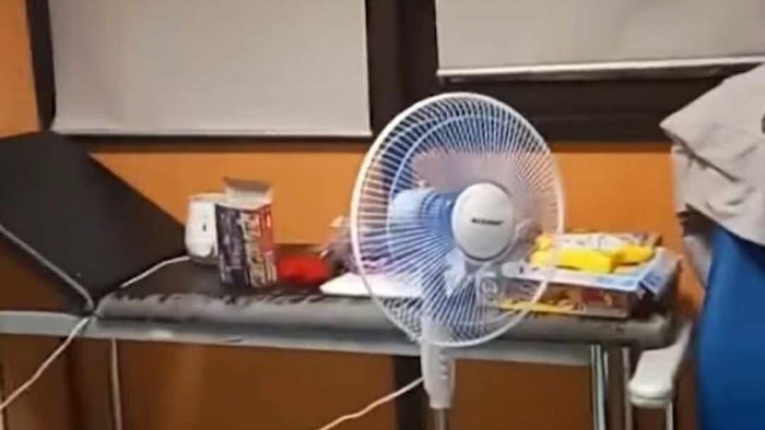 Finestre sbarrate perché rotte, aria condizionata assente e solo un ventilatore per contrastare il caldo record di queste settimane. Stessa situazione al padiglione 11 del nuovo policlinico dove nella sala d’attesa del reparto di neurologia, sito al terzo piano, solo un ventilatore muove un po’ d’aria, anche qui niente aria condizionata.