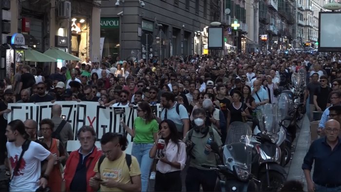 Molti i turisti e i clienti dei negozi che si sono riversati in strada. Un lungo applauso e l'acclamazione 'Giustizia!' accompagnano lo sfilamento dei manifestanti. "Giustizia x Giovanni" è anche lo striscione in testa al corteo. Molti amici ripetono a voce alta 'Riforma della legge!'. Dopo piazza dante e via Toledo il corteo ha proseguito lungo via Medina fino ad arrivare a piazza Municipio nel punto in cui è avvenuto il delitto.
