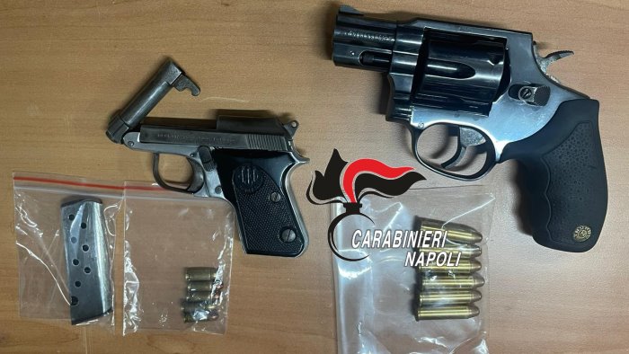L’uomo viene arrestato e la perquisizione estesa nella sua abitazione. Lì viene rinvenuta e sequestrata un’altra pistola. È una a tamburo modello taurus senza matricola con all’interno 6 cartucce calibro 3,57.