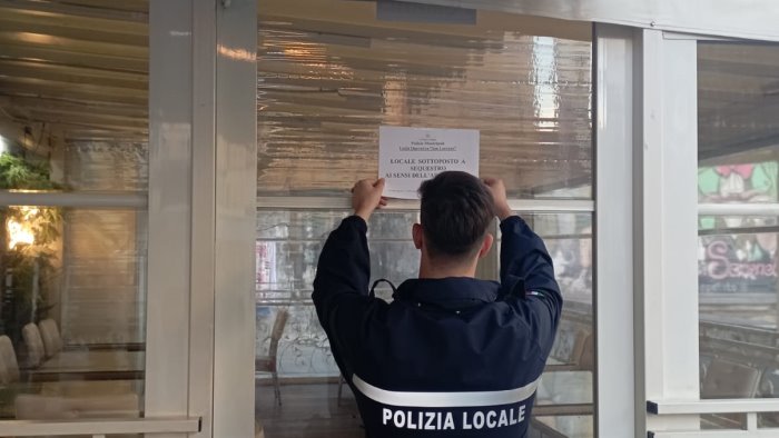 Una struttura abusiva di 36 metri quadrati - in alluminio e plexiglas - con annessa pedana in legno dotata di impianto di illuminazione, condizionatori e diffusione audio-video, è stata sequestrata dalla polizia locale di Napoli.