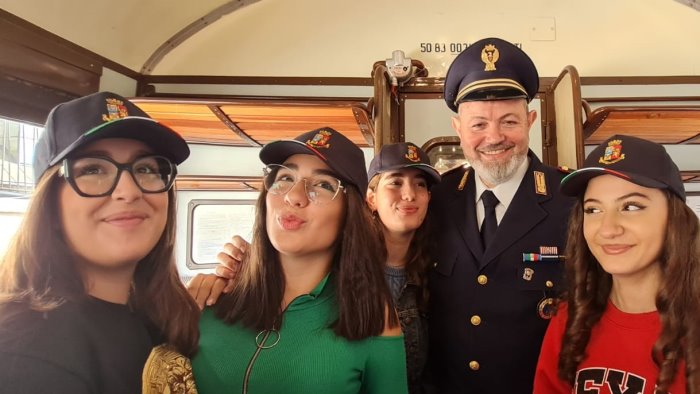 Per 250 studenti delle scuole medie dei quartieri napoletani di Forcella, Fuorigrotta e del comune di Caivano (NA) la giornata è cominciata a bordo dei pullman della Polizia di Stato con destinazione la stazione di Napoli Centrale. Da qui, con gli Agenti della Polizia Ferroviaria, il viaggio è proseguito sul treno storico delle Ferrovie dello Stato Italiane diretto al Museo Nazionale Ferroviario di Pietrarsa.
