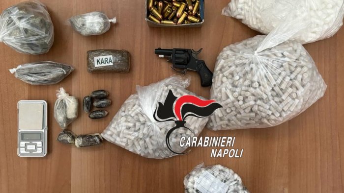 I controlli però non sono terminati con l’arresto del pusher e la denuncia al giovane complice ma si sono estesi in tutto il quartiere. Le perquisizioni hanno permesso di rinvenire a via Annamaria Ortese un’arma corta da sparo calibro 7,65 a tamburo da sei colpi pronta all’uso, 50 colpi calibro 45 R-P Auto Rim, 9 panetti di hashish per un peso complessivo di 200 grammi, un bilancino di precisione, una busta con all’interno 13 grammi di marijuana, 51 dosi della stessa sostanza e 19 stecche di hashish per altri 130 grammi di sostanza stupefacente.