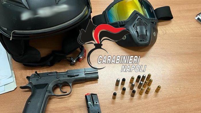 Sequestrati anche un casco da moto modello “semi jet” ed una mascherina (tipo soft air) trovati insieme alla pistola.