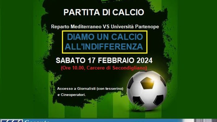 Il garante regionale delle persone sottoposte a misure restrittive della libertà personale Samuele Ciambriello ha organizzato per sabato 17/02/2024 alle ore 10 una partita di calcio “diamo un calcio all’indifferenza” tra una squadra di studenti universitari dell’Università Partenope di Napoli e una squadra vincitrice del torneo di detenuti del reparto Mediterraneo del carcere di Secondigliano. Con ‘obiettivo di creare un ponte tra dentro e fuori, che trasmetta un messaggio di riscatto e di speranza per i detenuti che si traduca in un gioco di squadra. Per raccontare la mattinata sono stati autorizzati all’ingresso giornalisti muniti di tesserino e operatori televisivi.