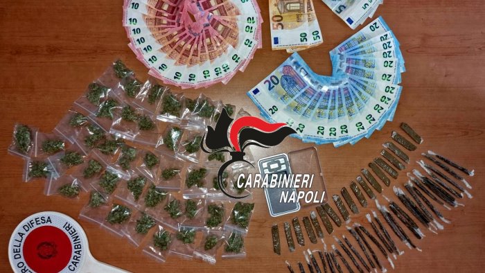 A Somma Vesuviana i carabinieri della locale stazione hanno arrestato per detenzione di droga a fini di spaccio un 21enne del posto già noto alle forze dell’ordine. I carabinieri hanno fermato e perquisito l’uomo che è stato trovato in possesso di 98 dosi di hashish e di 45 dosi di marijuana. Un sequestro di quasi 200 grammi di stupefacente. Nelle tasche dell’uomo anche la somma di 680 euro ritenuta provento del reato. L’arrestato è in carcere in attesa di giudizio.