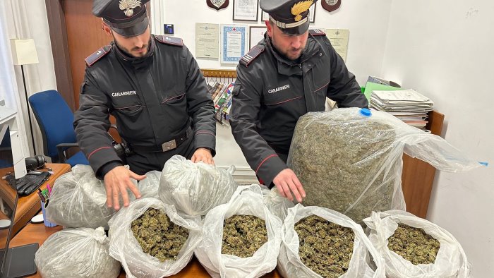 Durante le operazioni i carabinieri hanno rinvenuto e sequestrato 33 chili di marijuana a carico di ignoti. La droga era in due borsoni che erano stati nascosti in terreno aperto coperti dai rovi della vegetazione sulle sponde di un rivo. Le indagini continuano.