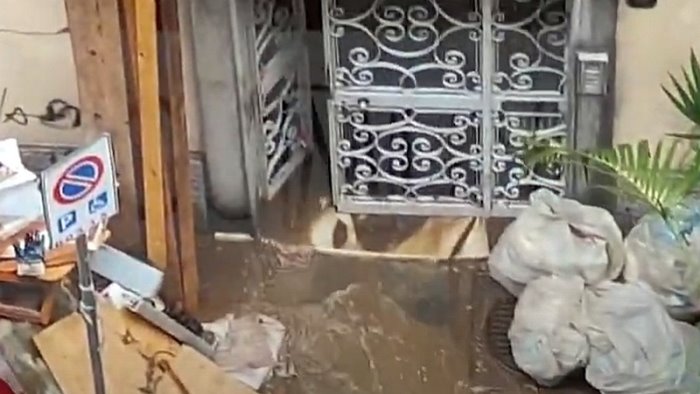 "E' bastato un acquazzone per generare una sorta di alluvione che ha trasformato alcune strade del Vomero, come via Torrione San Martino, in veri e propri alvei di torrenti in piena, come si può osservare in alcuni filmati pubblicati. Scene apocalittiche, da film catastrofico, con un fiume di fango che, vomitato dai locali a piano terra del fabbricato al civico, 9 di via Solimena, quello per intenderci sgomberato, in uno a quello sovrastante al civico 63 di via Morghen, a seguito della voragine apertati sul manto stradale all'alba del 21 febbraio scorso, dopo aver tra l'altro scardinato, con un boato, la saracinesca di un terraneo, generando un vero e proprio terrore tra residenti che sono usciti di corsa dalle proprie abitazioni, si è riversato lungo le strade a valle, invadendo anche alcuni locali a piano terra e pure la cabina per la fornitura dell'energia elettrica, con conseguente black out.