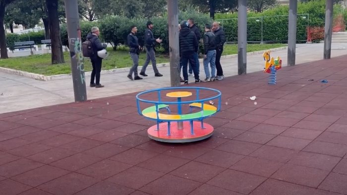 I bambini di Fuorigrotta sono tornati a divertirsi nell'area giochi di Piazza Italia che, giovedì scorso, in pieno giorno, è stata teatro di una sparatoria. Contro violenza e criminalità sono scesi in strada i cittadini del quartiere, supportati da Europa Verde, con diversi cartelli su cui hanno scritto "Questa non è zona vostra", "L'area giochi è per i bambini e non per i delinquenti", "Non si può vivere nella paura di essere sparati". "Nell'area giochi riaperta da soli dieci giorni, dopo tredici anni di chiusura, si è sfiorata la tragedia.