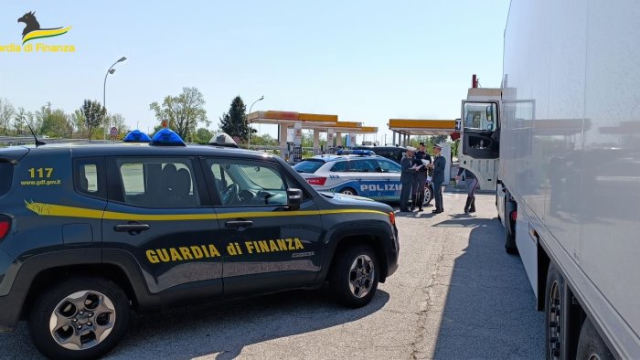 Il carburante, partito dall'Ungheria, era in appareza destinato alla Campania: il prodotto però era accompagnato da documenti fasullo che lo identificavano come liquido corrosivo. In realtà all'interno c'erano oltre 100mila litri di gasolio, sequestrati insieme a 4 articolati.