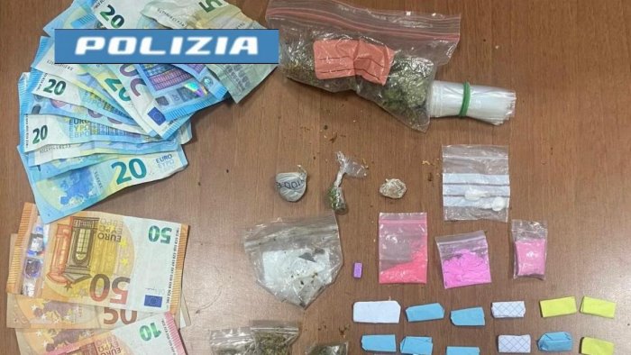 I poliziotti sono prontamente intervenuti per interrompere l’iter criminoso bloccando, con non poche difficoltà, l’indagato che è stato trovato in possesso di 4 involucri di marijuana del peso di 14 grammi circa, 26 involucri di cocaina del peso di 13 grammi circa, una dose di Mdma, un involucro di hashish del peso di circa 7 grammi, un involucro di ketamina e 415 euro, chiaro provento dell’attività delittuosa.