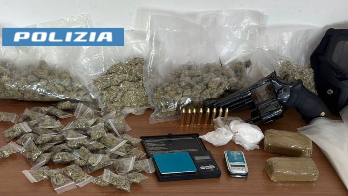 Gli agenti del commissariato San Giovanni- Barra hanno effettuato un controllo in uno stabile del Rione Villa dove, in un appartamento in disuso, hanno rinvenuto una pistola Taurus cal. 357 Magnum con 8 cartucce, risultata provento di furto, due buste con circa 35 grammi di cocaina, altre 5 buste contenenti oltre 500 grammi di marijuana, 2 panetti di hashish per un peso complessivo di oltre 201 grammi, due bilancini di precisione e diverso materiale per il confezionamento della droga che sono stati sequestrati.