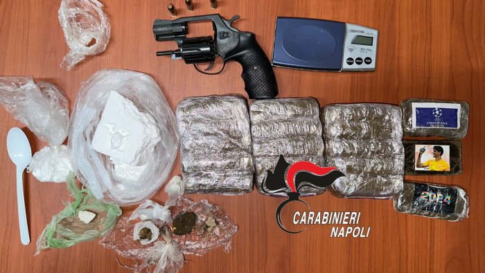 Il forte odore aveva attirato l’attenzione dei carabinieri che hanno trovato 18 panetti di hashish per un peso complessivo di un chilo e 800 grammi, 225 grammi di cocaina già suddivisa in dosi, materiale per il confezionamento dello stupefacente e una rivoltella calibro 38 pronta all’uso con 3 proiettili.