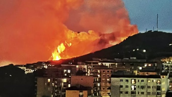 Aggiornamento: l'incendio aumentato dall'alba scende a via Epomeo