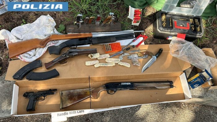 I poliziotti, all’interno delle confezioni, hanno difatti rinvenuto un fucile a pompa, risultato poi provento di furto, ed un altro con matricola abrasa.
