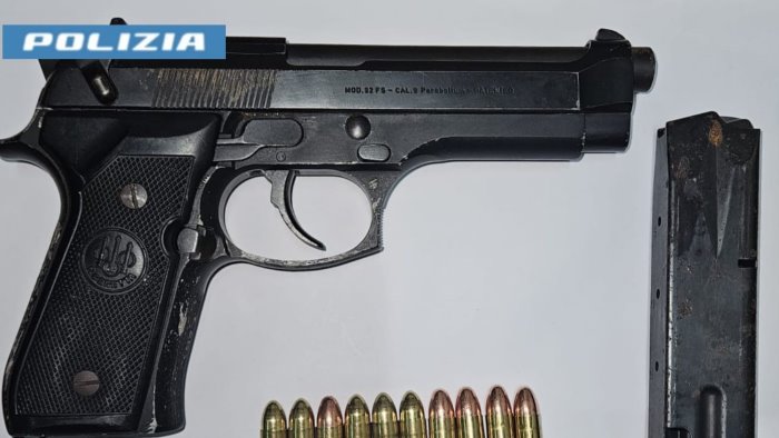 Gli uomini della squadra mobile, nel transitare in vico Pergole, hanno notato alcuni ragazzi a bordo di motocicli aggirarsi con fare sospetto e li hanno controllati. Uno di questi stava celando, nella cintola dei pantaloni, una pistola Beretta calibro 9 con matricola abrasa e 10 cartucce, di cui una camerata.
