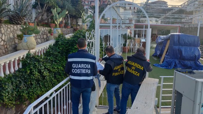 Lavori abusivi in un noto albergo della Penisola Sorrentina, scatta il sequestro di un'area di 700 metri quadrati: in azione i militari del Reparto operativo navale della Guardia di finanza di Napoli e della Guardia costiera di Castellammare di Stabia.