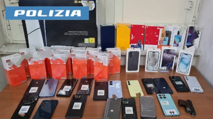 I due, sono stati trovati in possesso di una pistola lanciarazzi calibro 6mm marca Mondial, di 36 telefoni cellulari di diversi marchi e modelli e di una console per videogames di ultima generazione che, a seguito di accertamenti esperiti dal personale operante, sono risultati essere provento di rapina presso un negozio di telefonia di via Giulio Cesare. Per tal motivo gli indagati sono stati arrestati dal personale operante.
