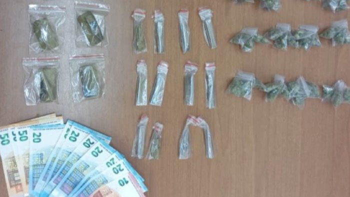 Pertanto, gli operatori sono tempestivamente intervenuti ed hanno bloccato i sue, trovando il passeggero in possesso di 3 bustine di marijuana, di un involucro di hashish e di 320, suddivisi in banconote di diverso taglio; nel bauletto del ciclomotore in sosta, invece, sono stati rinvenuti altri 25 involucri di hashish per un peso complessivo di circa 150 grammi di hashish e 46 bustine contenenti complessivamente circa 72 grammi di marijuana. Per tali motivi, gli indagati sono stati entrambi arrestati.