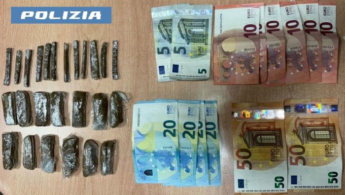 Pertanto gli operatori lo hanno raggiunto e bloccato trovandolo in possesso di 25 dosi di hashish e 250 euro suddivise in banconote di vario taglio; per tale motivo, è stato tratto in arresto dal personale operante.