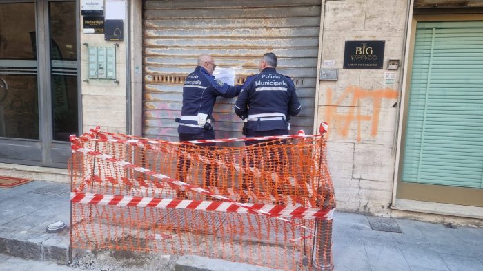 Tra le irregolarità riscontrate, la costruzione di un soppalco privo di autorizzazione sismica, nonché la rimozione illegale del pavimento e dei cordoli del marciapiede pubblico, oltre ai paletti parapedonali e a un segnale stradale verticale.