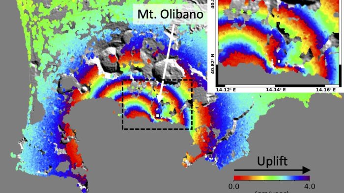 “In questa zona, in particolare in corrispondenza del Monte Olibano, è presente un’anomalia geodetica, evidenziatasi proprio dal 2021, che è stata oggetto specifico di nostri recenti studi”, aggiunge Francesco Casu, dirigente di ricerca del Cnr-Irea. “Questa anomalia si manifesta come una regione che si solleva meno rapidamente rispetto alle aree circostanti, suggerendo dinamiche complesse legate all’interazione tra deformazioni del suolo, sismicità e attività idrotermale”.