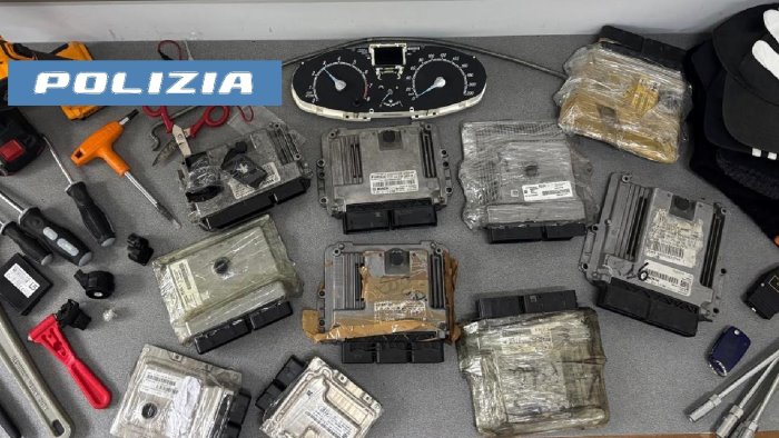 In particolare, gli agenti del commissariato Arenella, nel transitare in via Campano in direzione di via Scaglione, hanno controllato una vettura con due persone a bordo. Durante le fasi del controllo, gli operatori hanno rinvenuto, ben occultati nel veicolo, 10 centraline di autovetture di varie marche con relativi kit di accensione, strumentazioni elettroniche, spadini, cacciavite e diversi arnesi atti allo scasso.