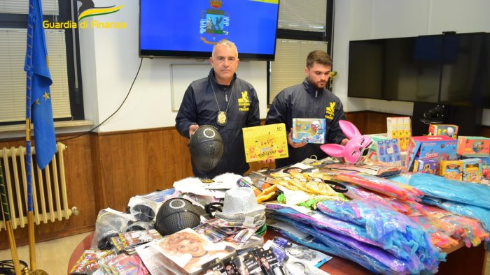 Una società con sede a Napoli che, secondo la Guardia di finanza, spediva prodotti di Carnevale non a norma in diversi mercati d'Italia. Le fiamme gialle di Pescara hanno sequestrato oltre 50mila giocattoli e accessori non sicuri, privi di etichettatura conforme e, in molti casi, contraffatti.