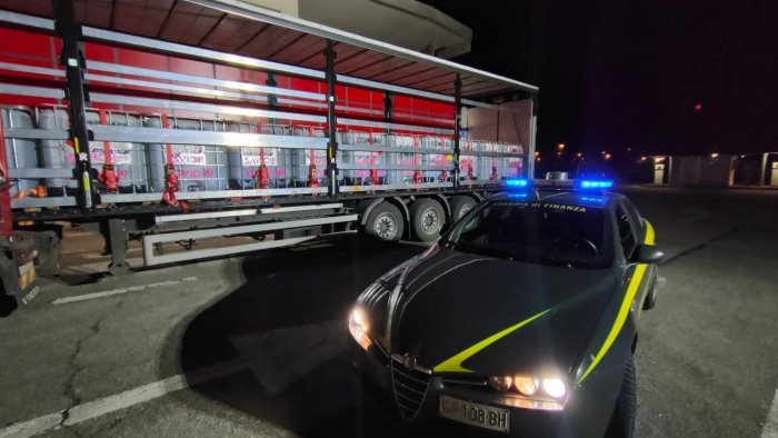 Traffico internazionale di alcol etilico, 120mila litri di prodotto di contrabbando - per un'evasione totale di quasi un milione e mezzo di euro - sequestrati dalla Guardia di finanza di Treviso.