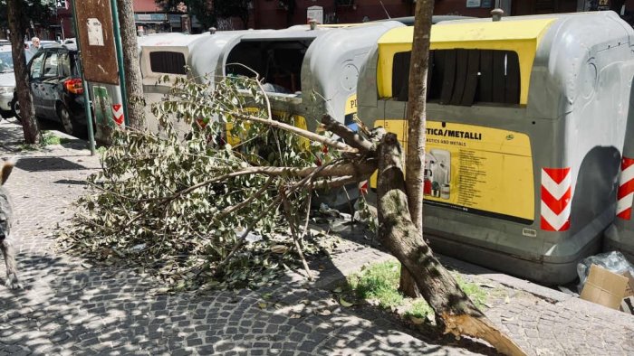 "A seguito delle segnalazioni pervenutemi da alcuni residenti stamani mi sono recato in via Tino di Camaino, nel quartiere Arenella, constatando purtroppo che un altro albero era stato preso di mira dai vandali. Infatti il tronco era stato spezzato in due con la parte della chioma che giaceva a terra nei pressi delle campane della differenziata, all'altezza del fabbricato al civico 13".