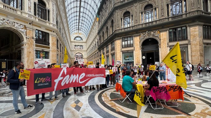 “Fame di verità e giustizia” non è solo uno slogan: è il nome di un potente flash mob itinerante organizzato da Libera, l’associazione contro le mafie fondata da don Luigi Ciotti. Questa volta l’evento ha preso la forma di un’osteria molto particolare, con un solo tavolo e un menù di 12 portate “difficili da digerire”, servite simbolicamente nel cuore di Napoli, alla Galleria Umberto I.
