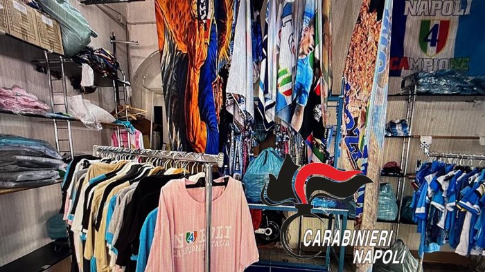 Nel locale sono stati rinvenuti circa 2mila articoli di merchandising contraffatti della SSC Napoli e di altre squadre di serie A.