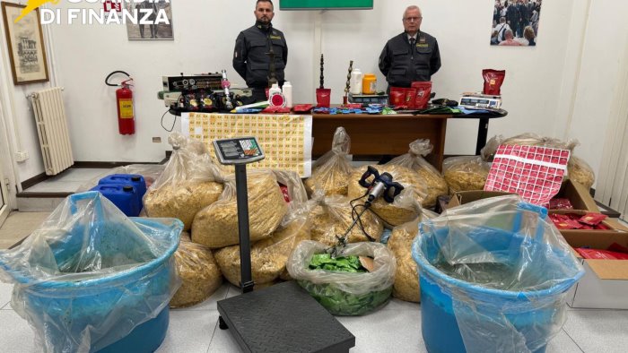 Le fiamme gialle hanno sequestrato oltre una tonnellata di tabacco, 35 macchinari e utensili per la produzione e il confezionamento, oltre a 25mila buste ed etichette e poco meno di 3mila euro in contanti e un orologio d'oro.