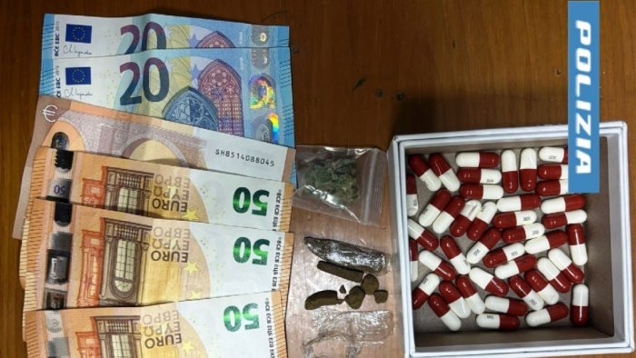 I poliziotti, intervenuti tempestivamente hanno raggiunto e bloccato, con non poche difficoltà, il 24enne, trovandolo in possesso di un involucro di marijuana, 3 involucri di hashish, 42 compresse di farmaco psicotropo e 240 euro, suddivisi in banconote di vario taglio.