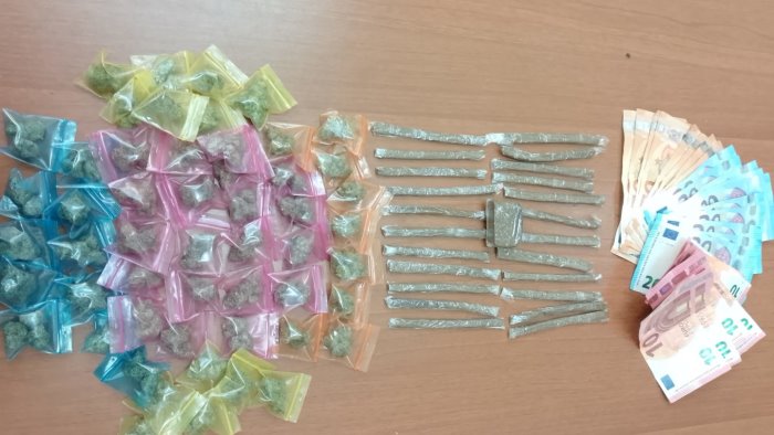 I poliziotti, prontamente intervenuti, hanno raggiunto e bloccato il 46enne trovandolo in possesso di 2 involucri di hashish, 4 bustine di marijuana e 740 euro, suddivisi in banconote di diverso taglio. Inoltre, gli operatori hanno rinvenuto, all’interno del sottoscala, altre 49 bustine di marijuana e 22 involucri di hashish; la sostanza stupefacente rinvenuta, del peso di circa 55 grammi circa di marijuana e 54 grammi di hashish, è stata sottoposta a sequestro.