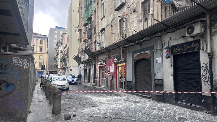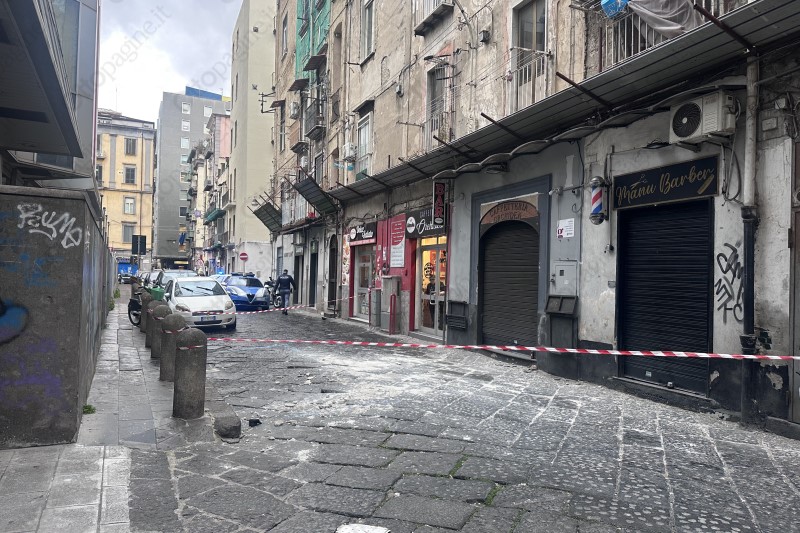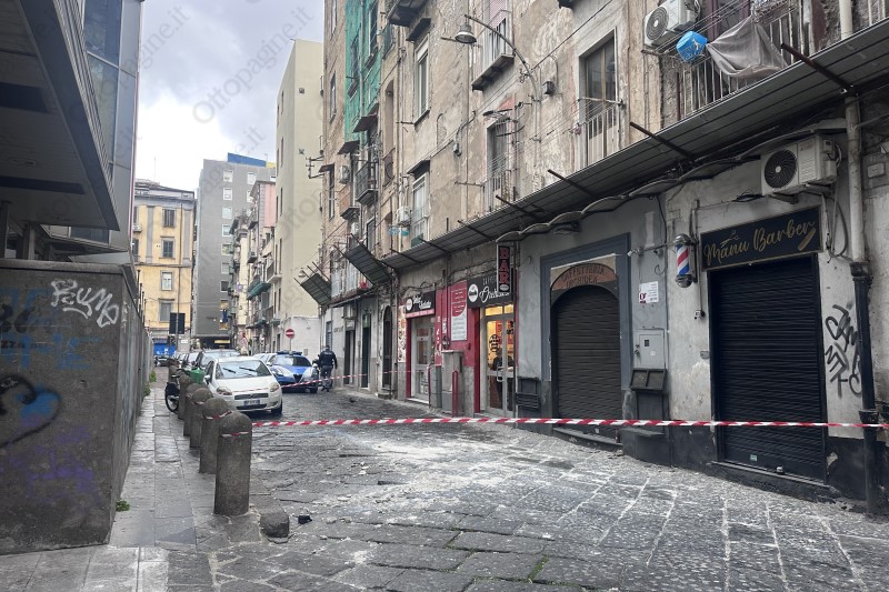 Momenti di paura in centro per la caduta di calcinacci da un palazzo. L'intervento della polizia ha consentito di transennare e mettere in sicurezza la strada (nella foto) particolarmente trafficata per la presenza dell'Università.