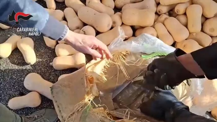 Nascosta tra le zucche, la droga è stata trovata e sequestrata. Il tir viaggiava con targa spagnola e, secondo i primi accertamenti, il carico sarebbe stato destinato alla provincia di Caserta.