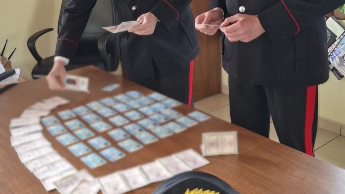Nella sua abitazione, nascoste nel cassetto di una scrivania, i militari hanno trovato 40 carte d’identità elettroniche e 21 cartacee, tutte con la stessa foto ma dati differenti.