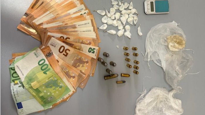 Ancora, avendo fondato motivo di ritenere che potessero esservi ulteriori elementi in ordine ai fatti per i quali si stava procedendo, i poliziotti hanno controllato l’abitazione dove hanno rinvenuto 28 bustine di cocaina del peso di circa 11 grammi, un involucro di marijuana, un bilancino di precisione, diverso materiale per il confezionamento della droga, 10 cartucce calibro 7.65, una cartuccia calibro 22 e 6 cartucce calibro 38.