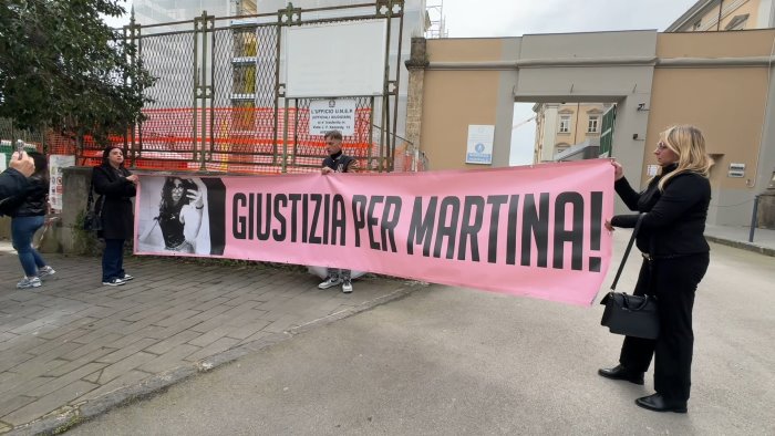 All'esterno c'erano anche gli amici della 14enne di Afragola, che hanno esposto uno striscione: "Giustizia per Martina".