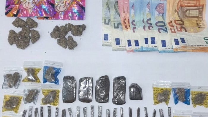 I poliziotti, prontamente intervenuti, lo hanno raggiunto e bloccato trovandolo in possesso di 2 bustine di marijuana, 3 involucri di crack, una stecca di hashish, un involucro di cocaina e 1.220 euro, suddivisi in banconote di vario taglio.