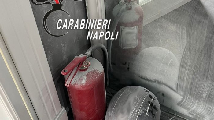 A terra c’è un estintore con il tubo infilato sotto la porta. I militari bloccano l’uomo, riportano la calma e rassicurano le vittime che erano all’interno.