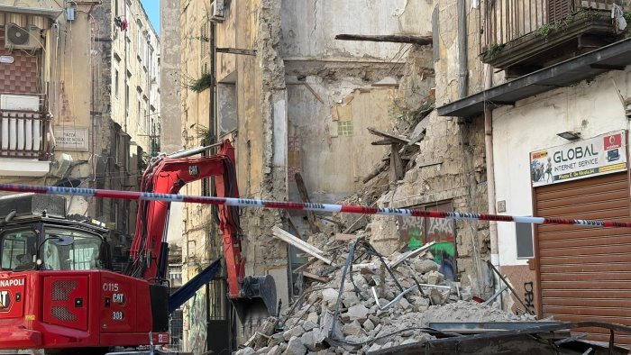 Il crollo dell'edificio abbandonato al civico 91 di Piazza de Nicola a Napoli. Da ore sono al lavoro i vigili del fuoco, impegnati nelle operazioni di scavo tra le macerie. In via precauzionale, sono state evacuate le abitazioni circostanti.