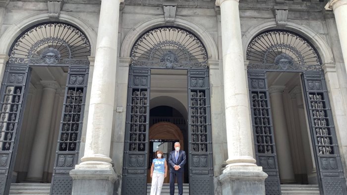Il rettore Matteo Lorito, insieme alla prorettrice Rita Mastrullo, ha simbolicamente aperto le porte e scoperto la targa che indica l’anno di fondazione dell’Ateneo e l’anno di realizzazione della sede di corso Umberto con i suoi progettisti.