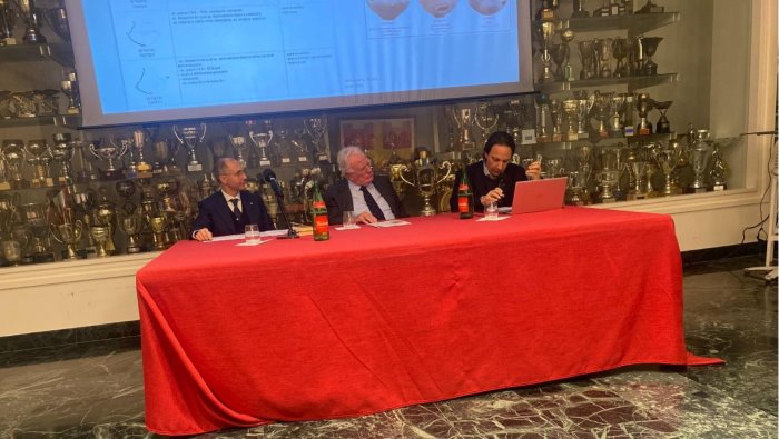 E’ l’incipit della lectio “La presenza greca nella Baia di Napoli: Pithekoussai, Cuma, Parthenope, Neapolis” tenuta nella Sala Carlo De Gaudio, del Circolo Canottieri Napoli, da Luigi Cicala, professore di Archeologia classica presso la Federico II, codirettore degli scavi di Cuma e direttore del Centro interdipartimentale di Studi per la Magna Grecia. Il presidente del sodalizio giallorosso Giancarlo Bracale, dopo i saluti e i ringraziamenti ai numerosi intervenuti e al conferenziere, informa che <<oggi che le istituzioni festeggiano i 2.500 anni dalla fondazione di Neapolis, il Circolo Canottieri Napoli organizza un approfondimento culturale per indagare le fonti storiche ed i rilievi archeologici che ci sveleranno alle origini di Parthenope e Neapolis". Quindi il consigliere alla Casa Gian Nicola De Simone, introduce la conversazione confermando, ancora una volta, con la sua presentazione, di essere un appassionato e dotto “storiofilo” della storia della nostra città dalle sue origini.