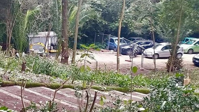 Al riguardo mi sono state inoltrate alcune fotografie che mettono in evidenza la presenza di una zona, all'interno del parco borbonico, posta nei pressi del museo Duca Di Martina, dove vengono parcheggiate numerose autovetture, un'area che prima era in gran parte nascosta dalla presenza della folta vegetazione e del transennamento ma che ora, a seguito dei lavori di disboscamento anche con l'abbattimento di alcune alberature, salta agli occhi con grande evidenza ".