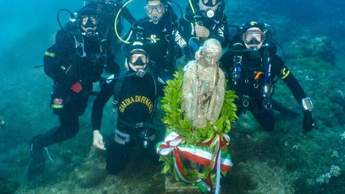 Da allora, ogni anno, a settembre, a legittimarne il ruolo di simbolo internazionale di solidarietà umana, sullo scoglio, tempio senza confini, viene celebrata una Santa Messa con successiva benedizione di una corona d’alloro e sua deposizione ai piedi della statua sommersa da parte di sub militari e civili.