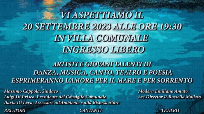 Animeranno la manifestazione scuole di danza, gruppi teatrali, cantanti ed è prevista la partecipazione straordinaria di Francesca Maresca, oltre a poeti e talenti artistici della penisola sorrentina e della costiera amalfitana. Una kermesse all'insegna delle arti e della musica per celebrare l'importanza che la città attribuisce al mare, bandiera blu 2023, è stata ideata ed è coordinata da Rossella Molisso e moderato da Emiliano Amato, vuole celebrare il mare, importante risorsa naturale, strumento di civiltà, di integrazione tra i popoli e di crescita culturale ed economica.