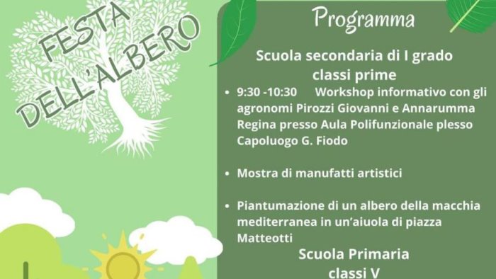 L’iniziativa è inserita nell’ambito della storica campagna di sensibilizzazione promossa da Legambiente, la “Festa dell’Albero” ed è organizzata in collaborazione con gli operai forestali, i vivaisti e gli esperti agronomi della Regione Campania, Giovanni Pirozzi e Regina Annarumma, che terranno il workshop presso l’aula polifunzionale del capoluogo G. Fiodo.
