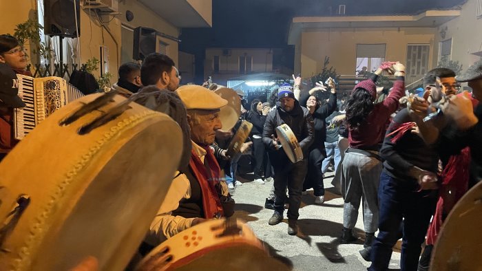 Circa 2000 persone al Canto Popolare di Zì Riccardo e Donne della Tammorra con balli fino a notte fonda, sfidando il freddo.