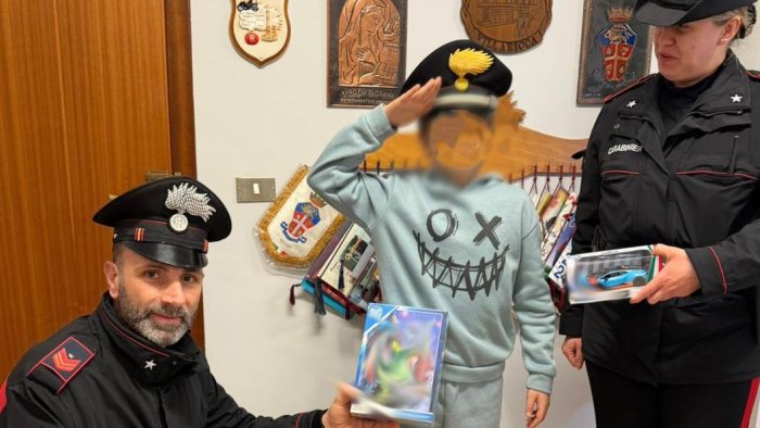I militari intervengono in un negozio di giocattoli del posto dopo la segnalazione da parte della responsabile dell’attività commerciale. Un bambino è all’esterno del negozio e sta vendendo alcuni libri scolastici e dei disegni realizzati proprio da lui.